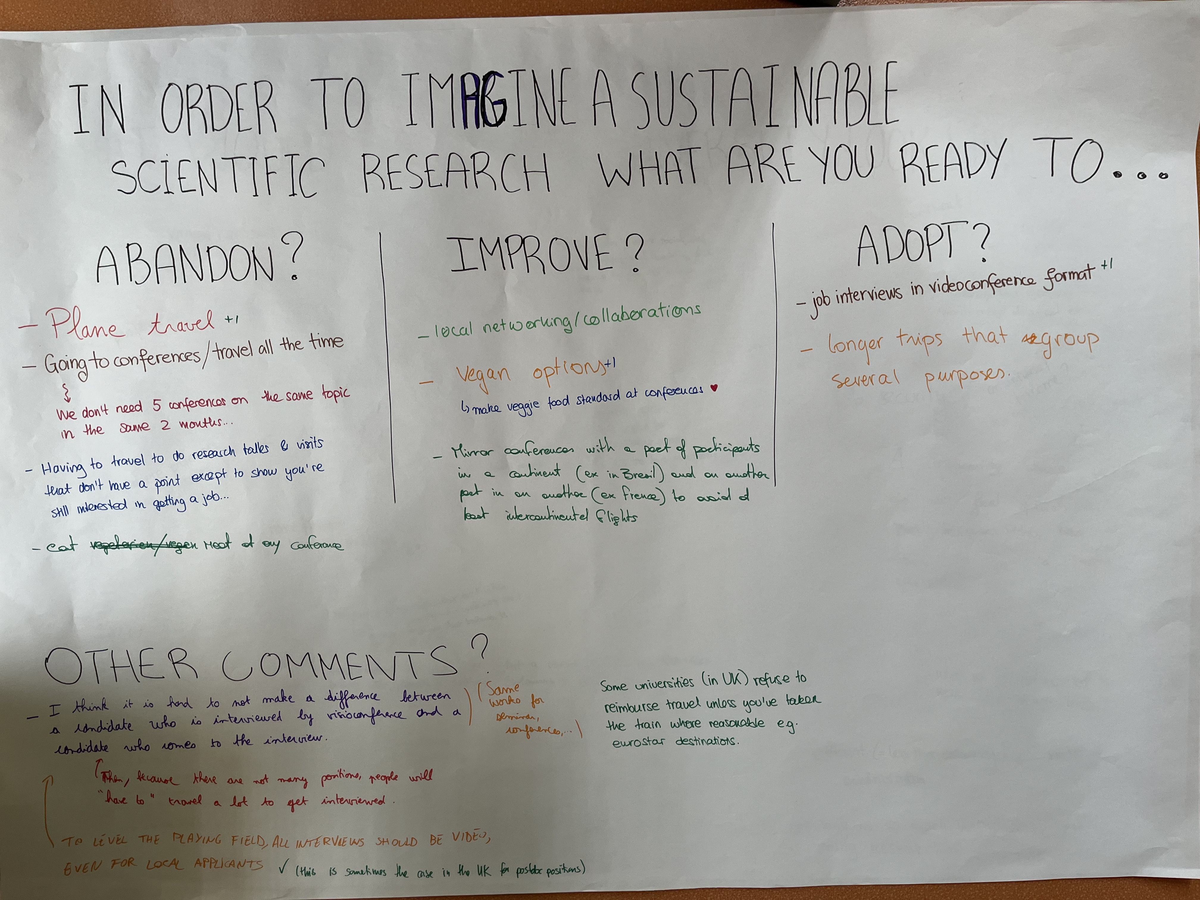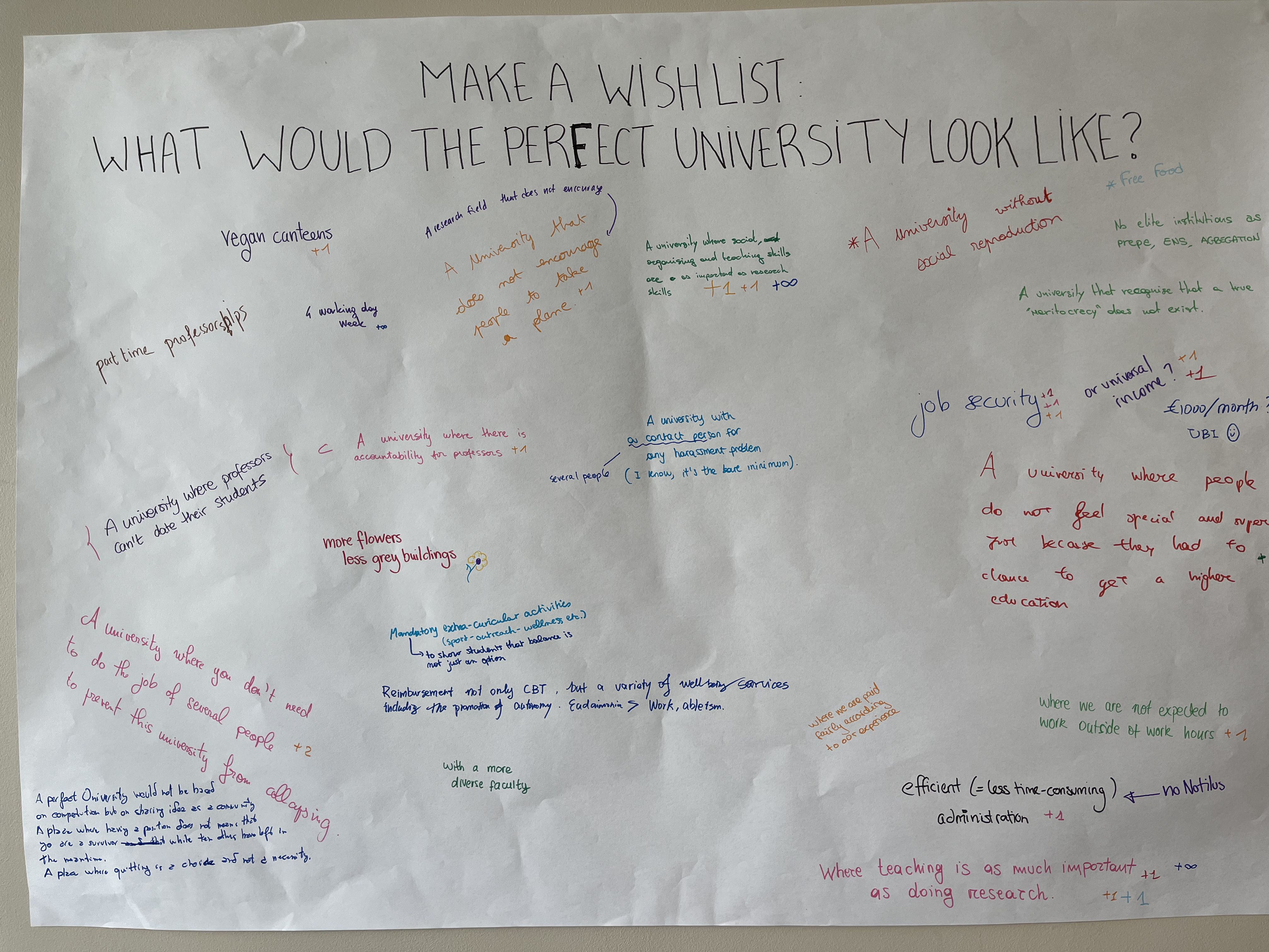 We also kept a week long poster, where we asked the participants to make a whishlist on how they would like our academic world to evolve.